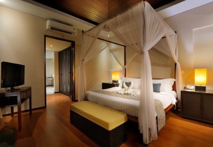 Set on an unassuming street in South Kuta, this polished hotel in a low-key building is 4 km from Nusa Dua Beach along the Bali Sea and 13 km from the Ngurah Rai International Airport. Refined rooms have free Wi-Fi, flat-screen TVs, coffeemakers and balconies. Suites add kitchens, sitting areas and dining spaces. Luxe villas come with private pools. Room service is available 24/7. Amenities include a laid-back bar and an elegant restaurant with terrace dining, plus 2 pools (1 with sea views), a spa and a fitness room. An area shuttle is included. Breakfast is offered for a surcharge. Parking is available. An airport shuttle can be arranged.