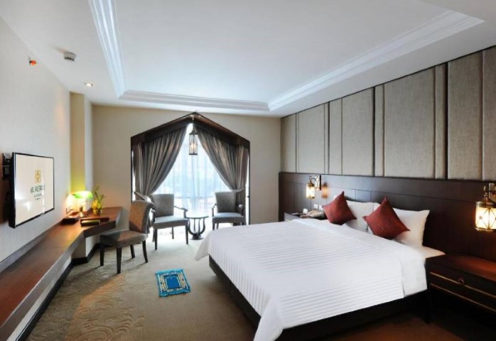 Set on a major city road, this elegant hotel in an Arabian-inspired building is a 4-minute walk from the Foundation of the Islamic Center of Thailand, 10 km from shops at MBK Center and 3 km from soccer matches at Rajamangala National Stadium. Chic, warmly decorated rooms feature free Wi-Fi, flat-screens, prayer mats and minifridges. The upscale suites add living areas and 4-poster beds. Room service is available 24/7. Area shuttles and welcome drinks are free. A laid-back eatery and an understated Mediterranean restaurant offer halal dishes and non-alcoholic drinks. There's also a gender-segregated rooftop pool and a gym, plus a prayer room.