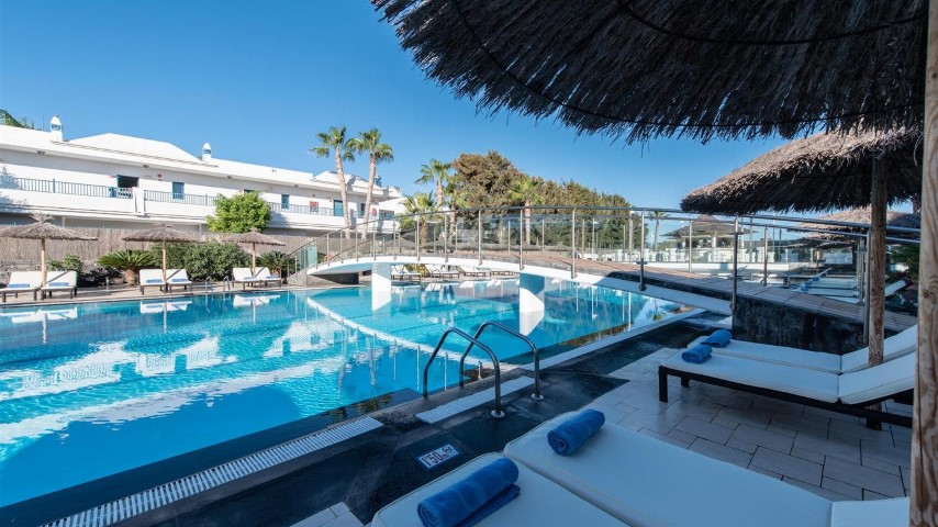 Hotel THB Tropical Island is a big resort located in Playa Blanca, Lanzarote. The hotel offers 15 Pools for adults and children and an adult only area with pool and bar. The hotel features 414 premium apartments with free wifi and balcony or terrace. The hotel has a buffet restaurant and 2 a la carte restaurants. Entertainment for adults and children. Tennis, football, miniclub , gym and a complete SPA. El Hotel THB Tropical Island es un gran complejo ubicado en Playa Blanca, Lanzarote. El hotel ofrece 15 piscinas para adultos y niños y un área solo para adultos con piscina y bar. El hotel cuenta con 414 apartamentos premium con wifi gratuito y balcón o terraza. El hotel tiene un restaurante buffet y 2 restaurantes a la carta. Entretenimiento para adultos y niños. Tenis, fútbol, miniclub, gimnasio y un completo SPA